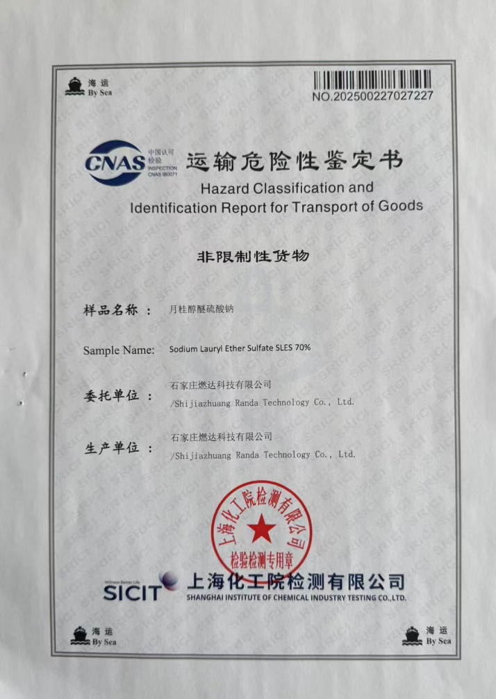 Shijiazhuang Randa Technology Co. , Ltd. is locatedin Hebei,Located in Hebei Province. It is close to Beijing, the capital of China, and the port city of Tianjin. We specialize in the production of eSurfactants and emulsifiers, the main products are SLES 70%,LABSA 96%,CAB-35,CDEA 95%,AEO(2、3、7、9) and other products, the annual total output of 500,000 tons. Our products are exported to more than 40 countries and regions around the world, and the annual export volume reaches hundreds of millions of US dollars. Our philosophy, mutual benefit, common development. Look forward to working with you!